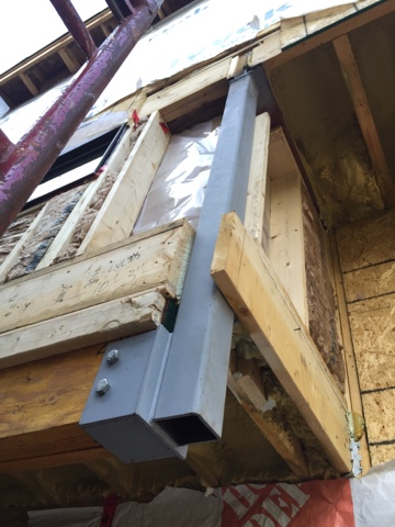 When it turned out - much to my frustration - that the carport had been designed without regard for the city bylaws on setbacks, it became necessary to go the route of the internal steel structure, and hope to be granted a minor variance to build the carport later.